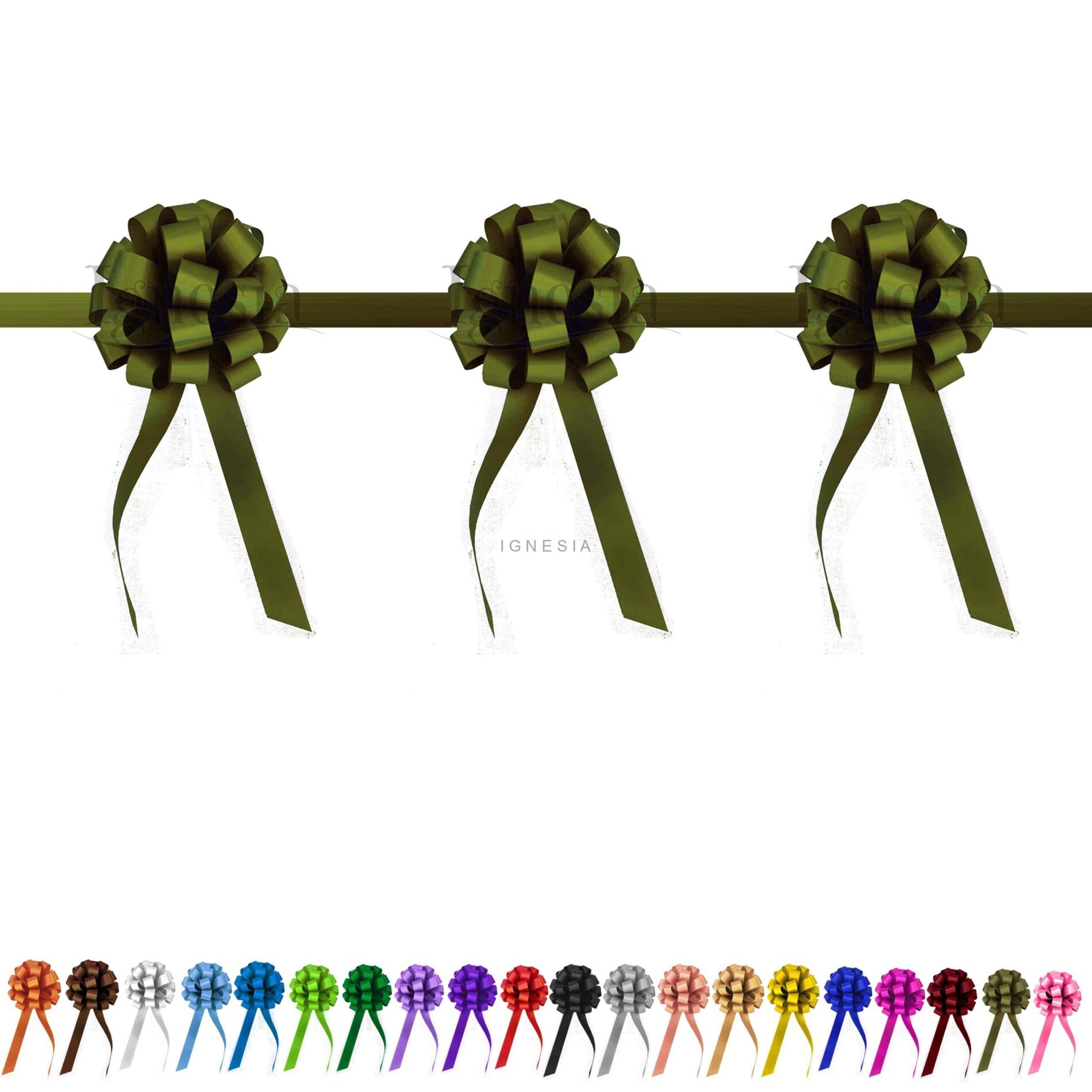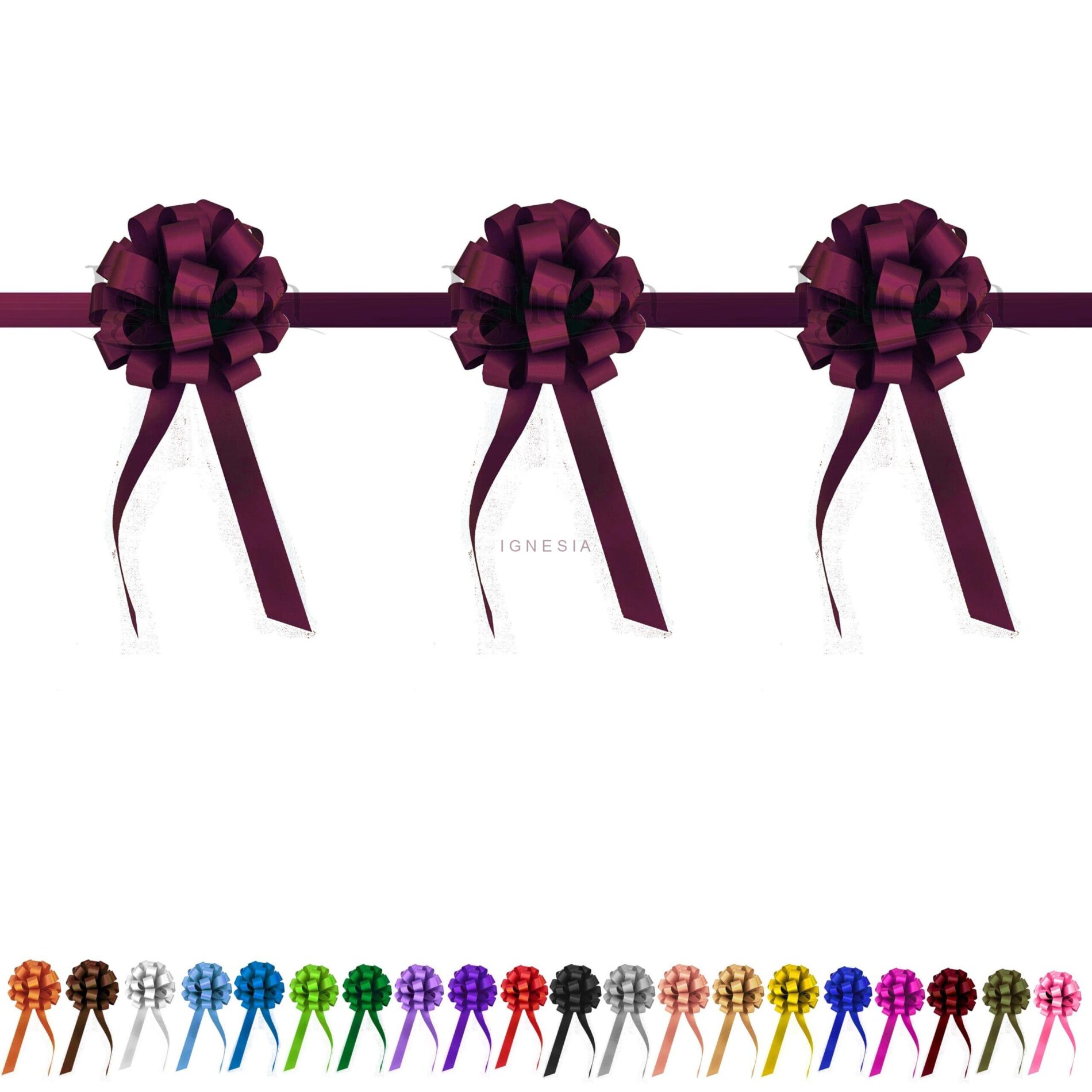 - Aksen 3 Pompom Mewah: Dilengkapi dengan tiga pompom berukuran proporsional yang ditempatkan secara strategis, memberikan sentuhan kemewahan dan detail yang menawan. Pompom ini menambah dimensi visual dan membuat pita terlihat lebih penuh dan megah, sangat cocok untuk dekorasi acara resmi.