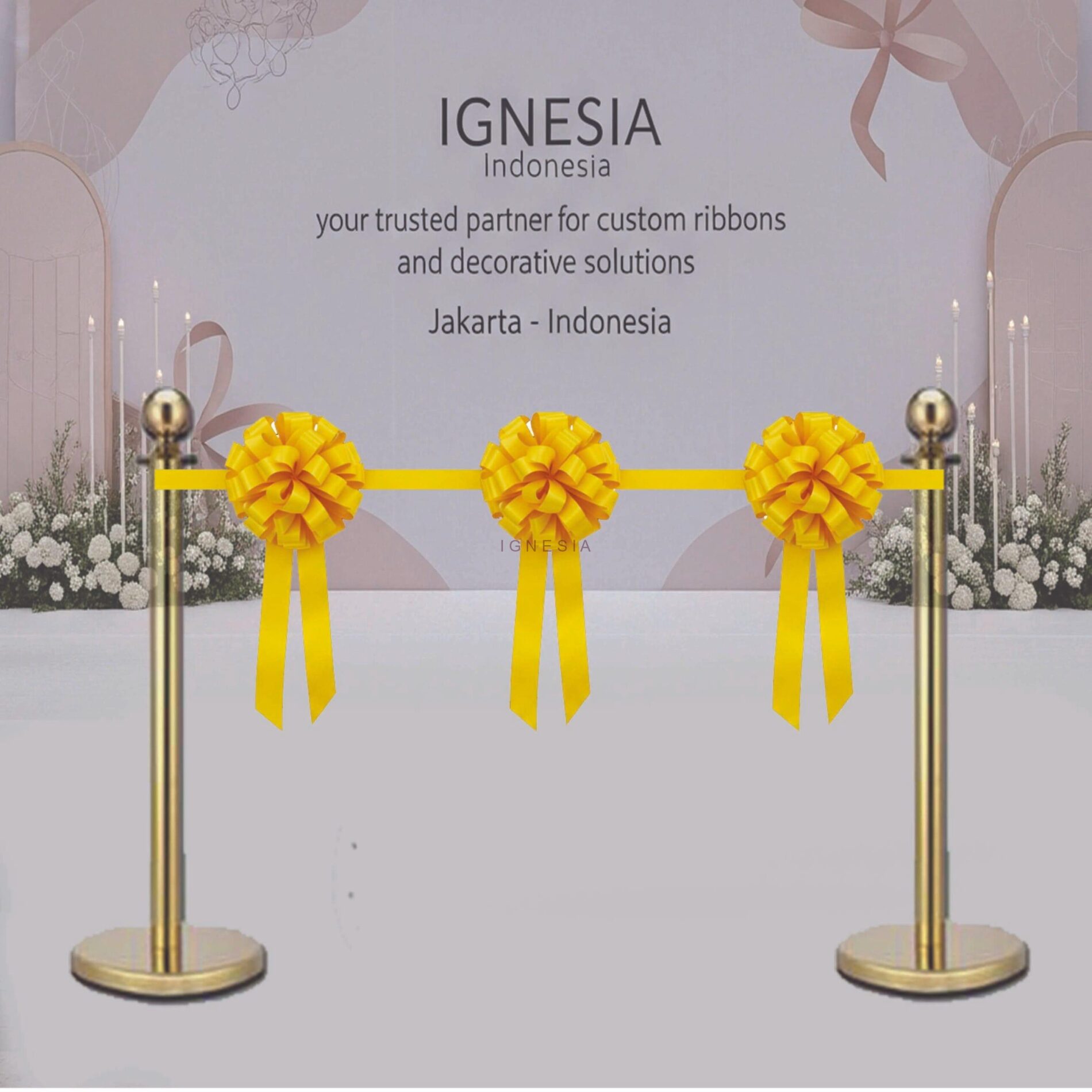 Pita Peresmian 3 Pompom Kuning Bahan Pita Polypropilene / Pita Jepang Untuk Acara Potong Pita, Pembukaan Kantor, Restoran, Toko, atau Gedung Baru.