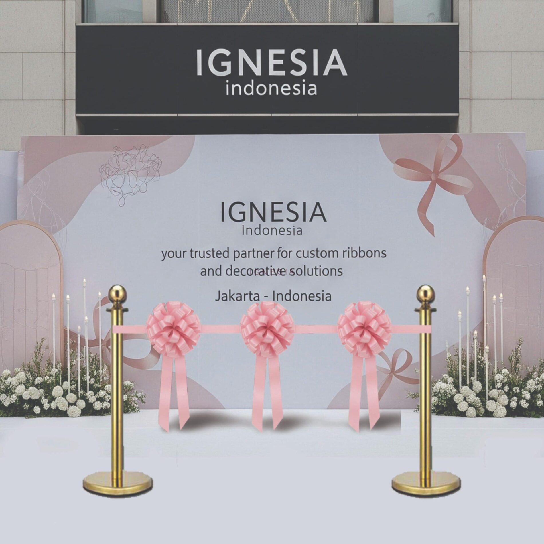 Pita Peresmian 3 Pompom Pink Muda Bahan Pita Polypropilene / Pita Jepang Untuk Acara Potong Pita, Pembukaan Kantor, Restoran, Toko, atau Gedung Baru.